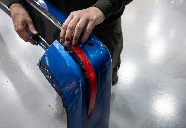 Plaats nieuwe peddels op de nieuwe bumper door ze op hun plaats te klikken. Let op: De peddels moeten vóór het schilderen en monteren worden voorzien van gaten voor de parkeersensoren, als die er nog niet zijn.