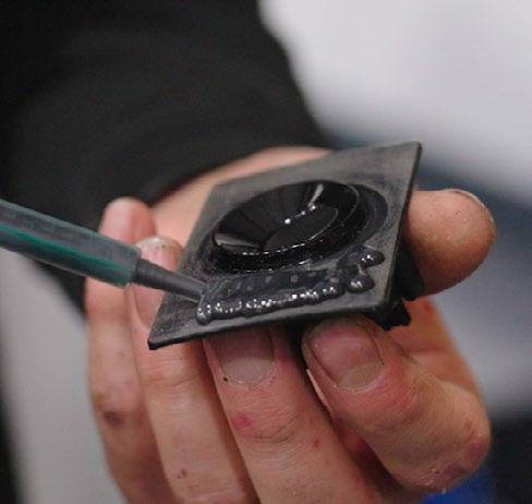 Voer een plaatsingstest uit om te controleren of ze passen en verwijder eventuele resten met een persluchttoestel. Breng vervolgens lijm aan op de beugels en bevestig ze op hun plaats.