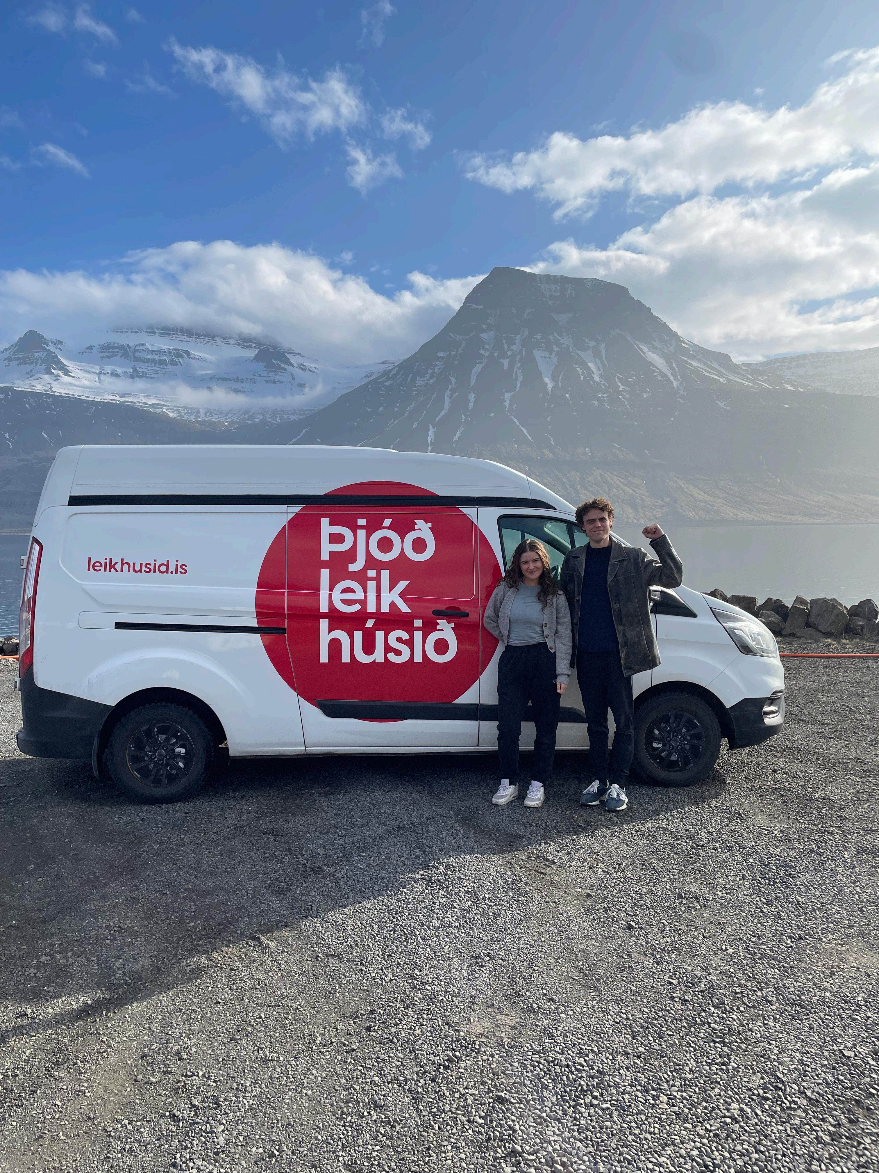 Almar Blær Sigurjónsson og Selma Rán Lima á leikferð með Orra óstöðvandi sem heillaði börn víða um land á síðasta leikári. Sýningin var valin sýning ársins á Sögum-verðlaunahátíð barnanna á RÚV.
