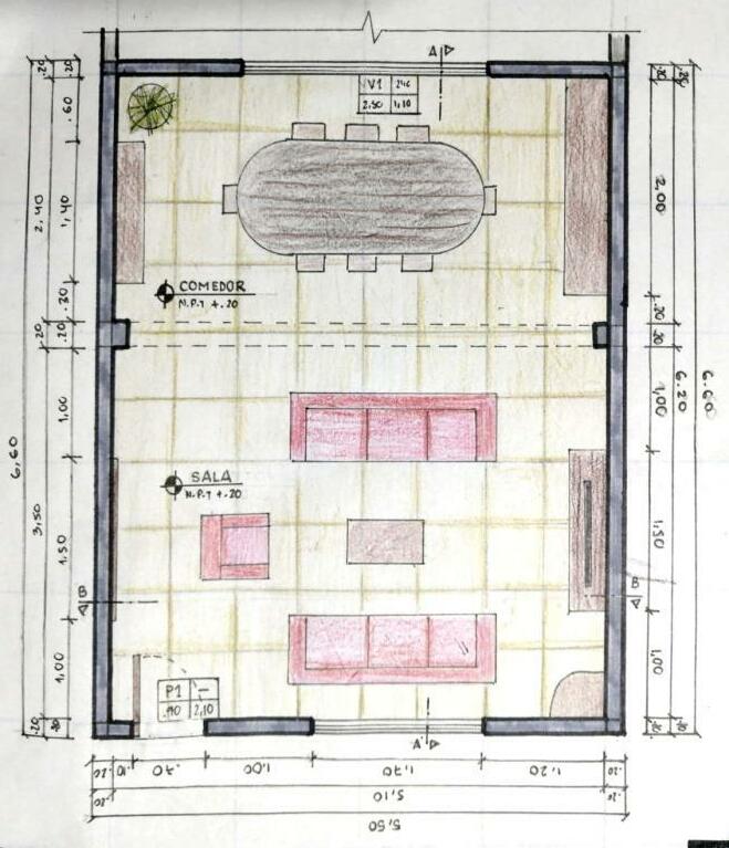 Realizar el dibujo de una planta arquitectónica utilizando toda la información necesaria de valorización y simbología arquitectónica. Como cotas, medidas, ejes, etc También aprender a manejar los diferentes tipos de estilógrafos para resaltar muros, vanos, puertas, etc.