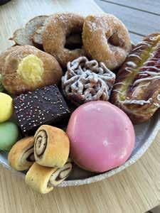 Valikoimaan kuuluvat monenlaiset makeat kahvileivät, kuten kanelipitkot.