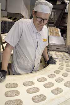 Tuotekehitysvastaava Ville Korpi kehittää koko ajan uusia tuotteita. Kuvaushetkellä kokeilussa olivat ruispalaleivät hieman erilaisella reseptillä.