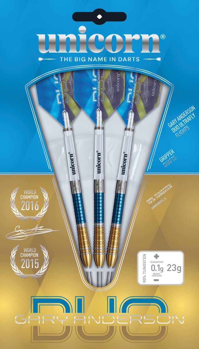 Stunning Dual PVD Coated Gary Anderson Endorsed barrels. The Gary Anderson Phase 6 Duo is replica of his Phase 6 dart that The Flying Scotsman is currently using and is completed with the iconic machined grooves signifying his 2 World Championship wins.