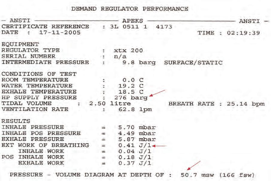 다이버가 호흡기를 통해 공기를 1회 흡입하고 내보낼 때 어느 정도의 호흡 노력이 필요한가를 수치로 표시한 것을 보여주는 '호흡저항치'라고 하며 ANSTI는 이러한 호흡저항치를 측정하는
