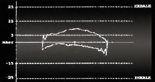 ANSTI에서 측정된 데이터는 그림 1의 그래프처럼 나타납니다. 그 수치에서 호흡저항이 작은 호흡기와 호흡저항이 큰 호흡기를 나눠볼 수 있습니다. 그림1의 호흡기에 대해서는 1회 호흡 (숨을 들이마시고 내뱉음)에 필요한 에너지가 적기 때문에 호흡저항이 작은 호흡기하고 판단 할 수 있습니다. 이 호흡기는 안정적으로 공기를 공급할 수 있기 때문에 어떠한 사용조건에서