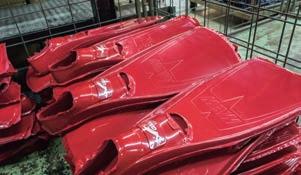 모든 기술 수준에 맞는 다양한 오리발을 구성하도록 개조할 수 있습니다. 보다 부드러운 고무 화합물을 포함하는 짧은 블레이드 오리발은 제어가 용이하고 가벼운 발차기로도 적절한 추진력을 발휘하는 반면, 보다 단단한 고무 화합물로 제작된 긴 블레이드의 오리발은 더 높은 추진력을 발휘합니다. 다양한 고무 화합물을 혼합하여 필요에 따라 부드럽거나 단단한 특성을 지닌 오리발을 제공할 수도 있습니다. 예를 들어, 오리발을 신고 벗기 쉽게 하기 위해 뒤꿈치 부분에 더 유연한 화합물을 사용하는 것입니다. 동일한 쌍이 없습니다.