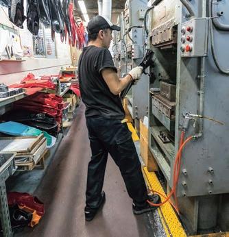 끝부분까지 힘을 전달하기 위한 밑창 기본 보다도 약간 두껍게 설계함으로써 차는 힘에 밀리지 않고