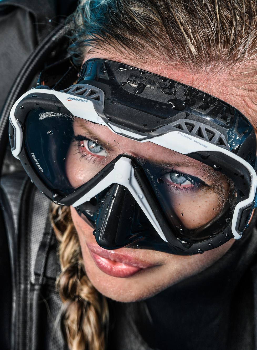 까다로운 다이버의 요구를 충족할 수 있습니다. 통합 스테인리스 스틸 인서트가 있는 프레임과 매끈하고 평평한 프로필을 특징으로 하여 탁월한 시야를 제공하는 내구성이 뛰어난 마스크를 제공합니다. 전용 금속 클립으로 렌즈를 쉽게 교체할 수 있습니다. 두 버전 모두 마스크 스커트에 압력을 균등하게 분산하고 스커트의 접착력을 개선하는 데 도움이 되는 “Y자형” 버클이