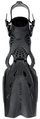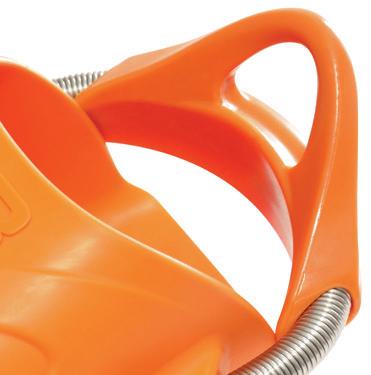 돌출형 풋 플레이트는 다이버가 핀을 쉽 게 착용할 수 있도록 부츠와 고무로 된 풋 포켓 사이의 마찰을 줄입니다.