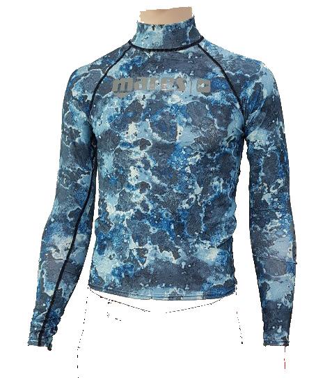 파랑 얼룩무늬 색상의 새로운 래쉬가드 래쉬가드 카모블루