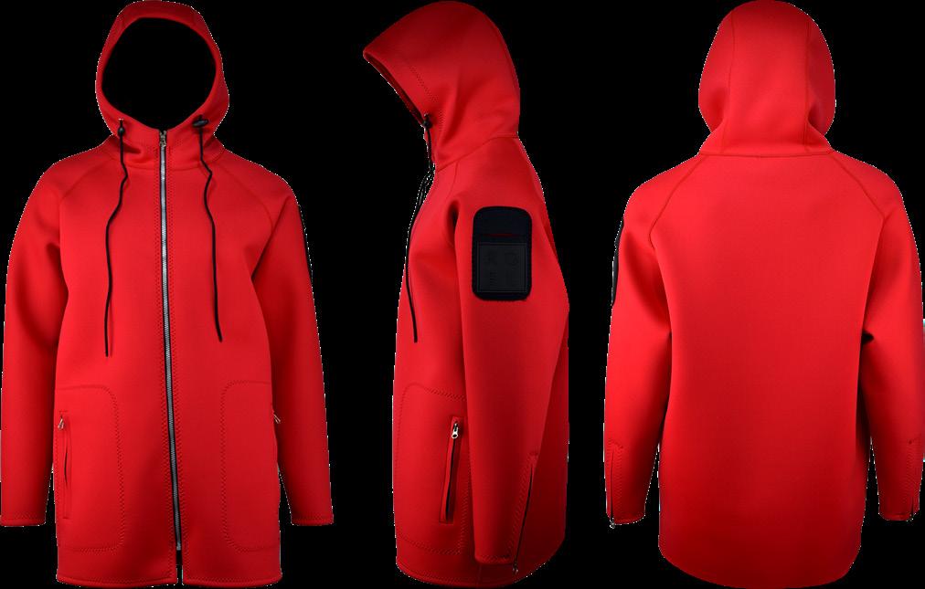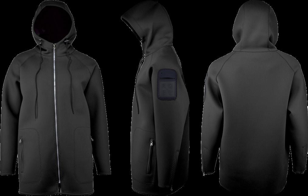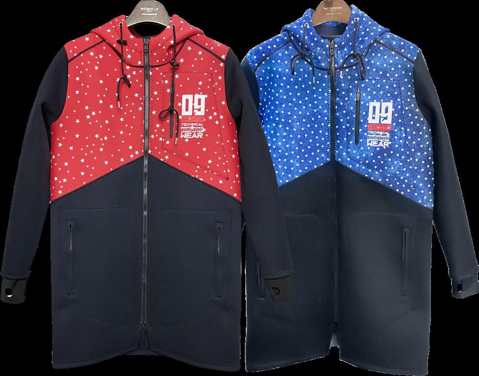 매끄럽고 윤기있는 표면을 특징으로 하는 섬세한 원 단입니다.육상에서의 냉기를 억제하는 건조함과 착 용감이 프로다이버에게 호평을 받고 있습니다.