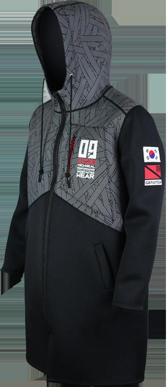 프로다이버를 위한 재질. 특징 발수성이 높은 재질로 기화열 손실을 억제하고 풍랭