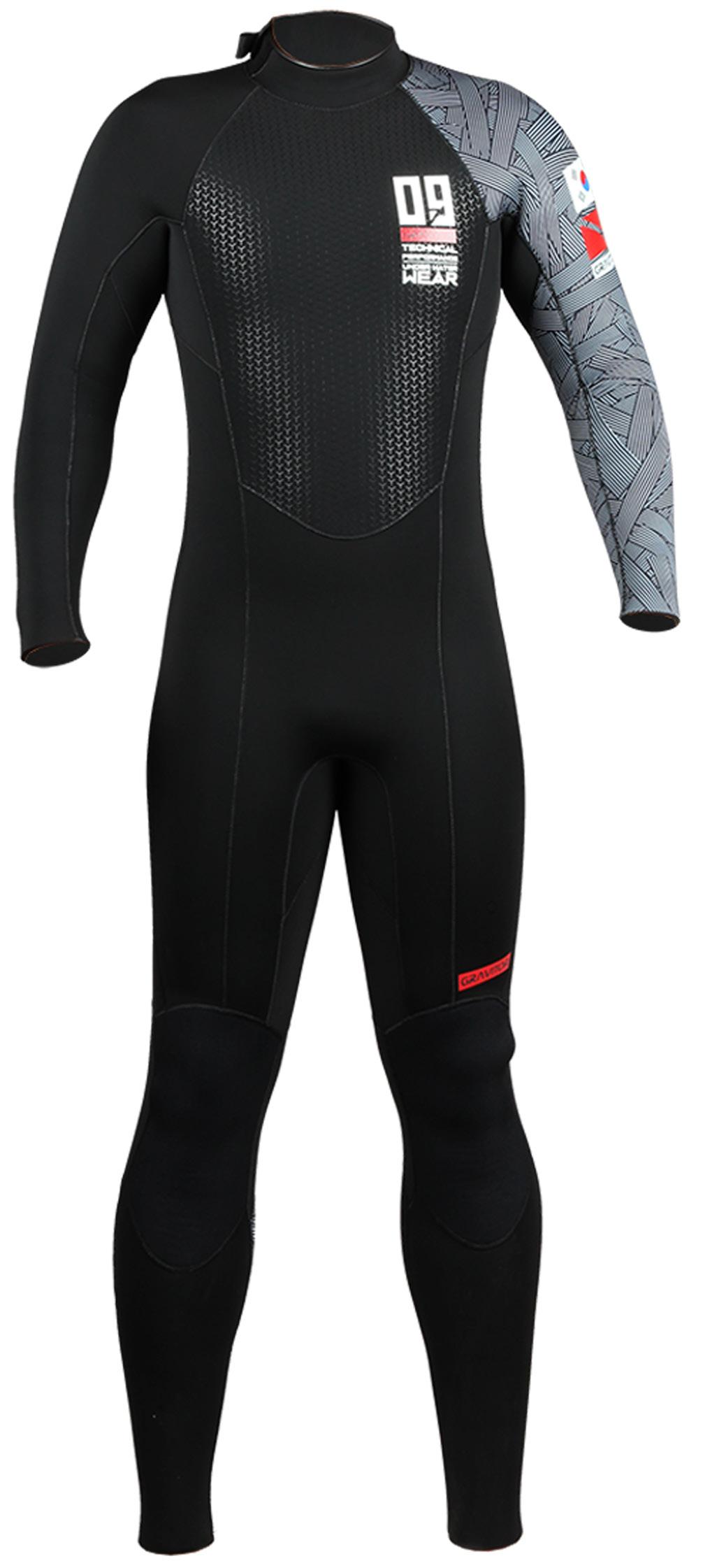 리뉴얼된 프리덤블랙. 스틸플레이트 실리콘 어깨패널로 강인한 느낌의 프리덤 디자인. 고신축성의 메가플렉스 재질로 편안하게. 손, 발목은 스킨처리되어 수밀성 강화.