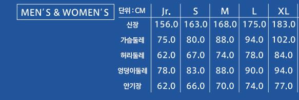 지난 30여년간의 축적된 데이터를 통해 한국인의 체형에 가장 잘 맞는 사이즈차트를 구현했습니다.