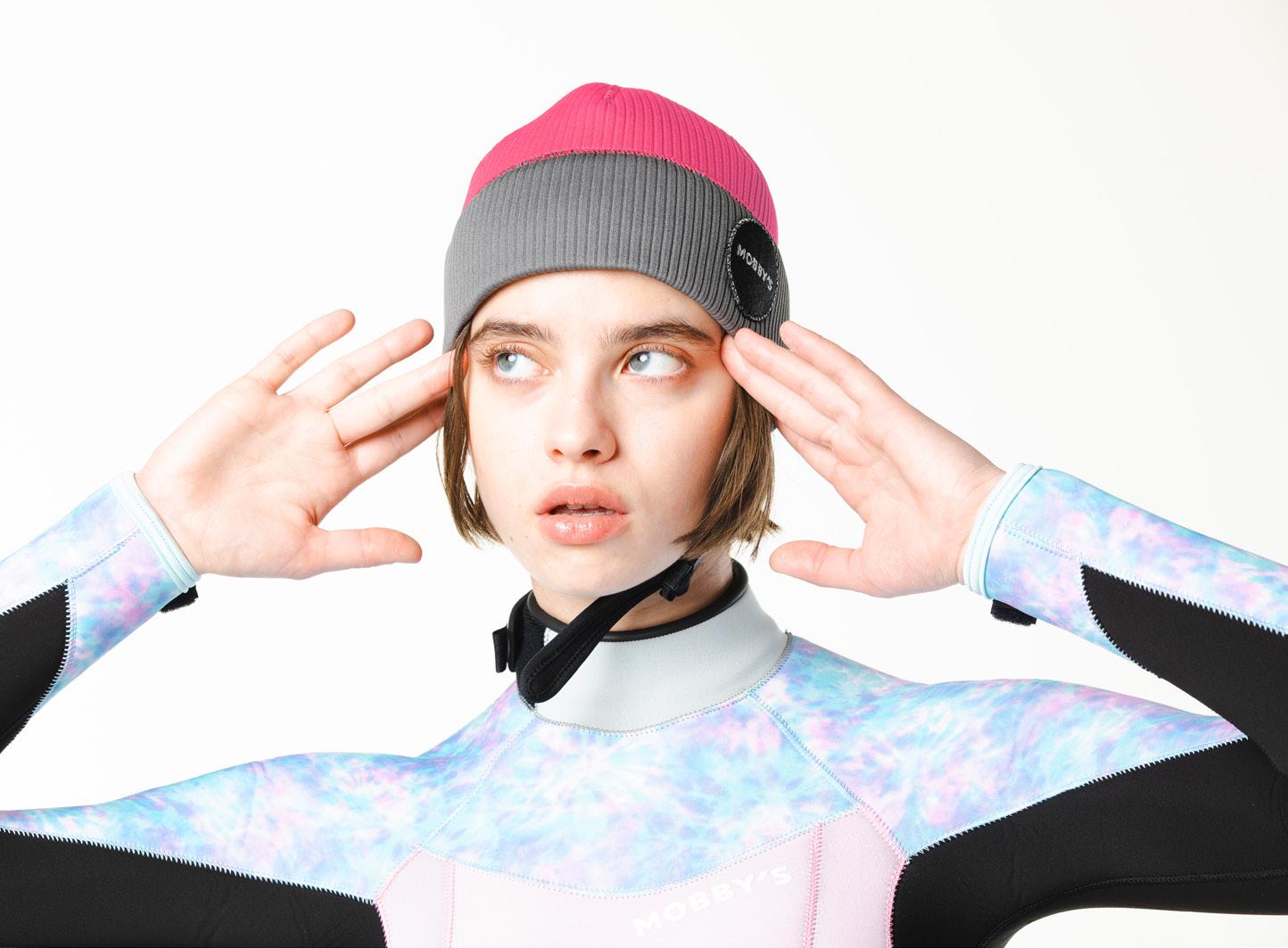 후드 네오프렌이 아닌 듯 네오프렌인 스테디셀러 캡형 비니. 변경된 MOBBY'S와펜, 비비드한 컬러.