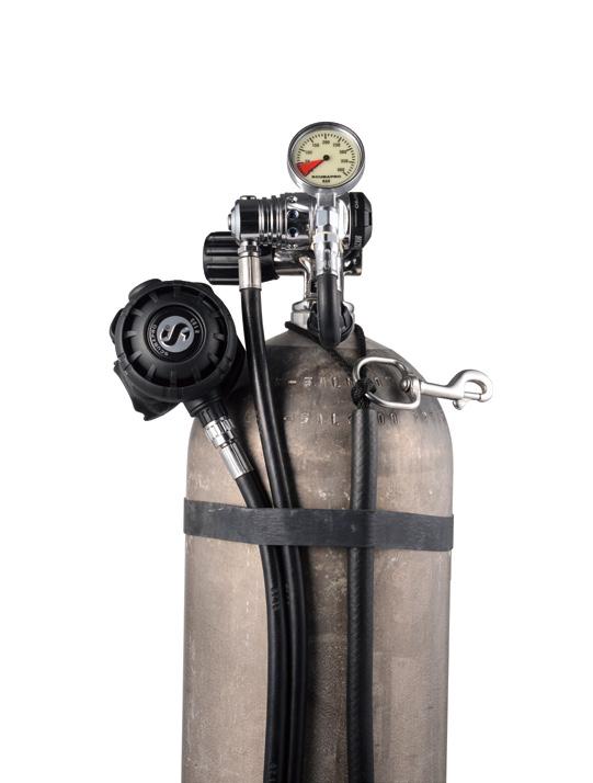 • 금속 스레드와 균형 밸브가 있는 테크노폴리머 플라스틱 배럴은 무게를 줄이는 데 도움이 되며 극도로 차가운 물에서 다이빙할 때 얼음 결정이 자리 잡을 수 없는 표면을 제공합니다.