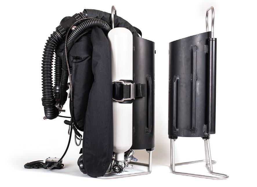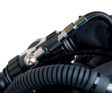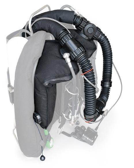 JJ-CCR 리브리더는 산업내에서 매우 적은 호흡노동량을 갖습니다. 어깨의 윤곽을 따라가는 등에 장착된 카운터 렁으로 부드럽고 편안한 호흡 패턴을 유지할 수 있습니다. Delrin에 서 밀링된 T 피스는 튼튼한 DSV(Dive surface valve)로 끝나는 튼튼한 호흡 호스에 연결됩니다.