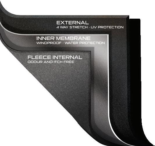 수상 방풍 3중 레이어 합성 소재는 수상 스포츠 선수를 위해 만들어졌습니다. 편안한 ‘마이크로 플리스’ 레이어는 피부 바로 다음에 위치하고 있으며, 수분과 땀을 흡수하여 신체를 건조하게 유지시켜줍니다. 두 번째 가운데 ‘기술’
