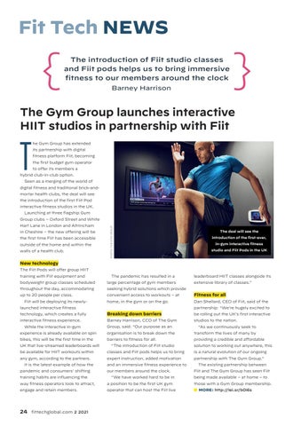 hybrid club-in-club option. Seen as a merging of the world of digital fitness and traditional brick-andmortar health clubs, the deal will see the introduction of the first Fiit Pod interactive fitness studios in the UK. Launching at three flagship Gym Hart Lane in London and Altrincham in Cheshire – the new offering will be the first time Fiit has been accessible outside of the home and within the walls of a health club.