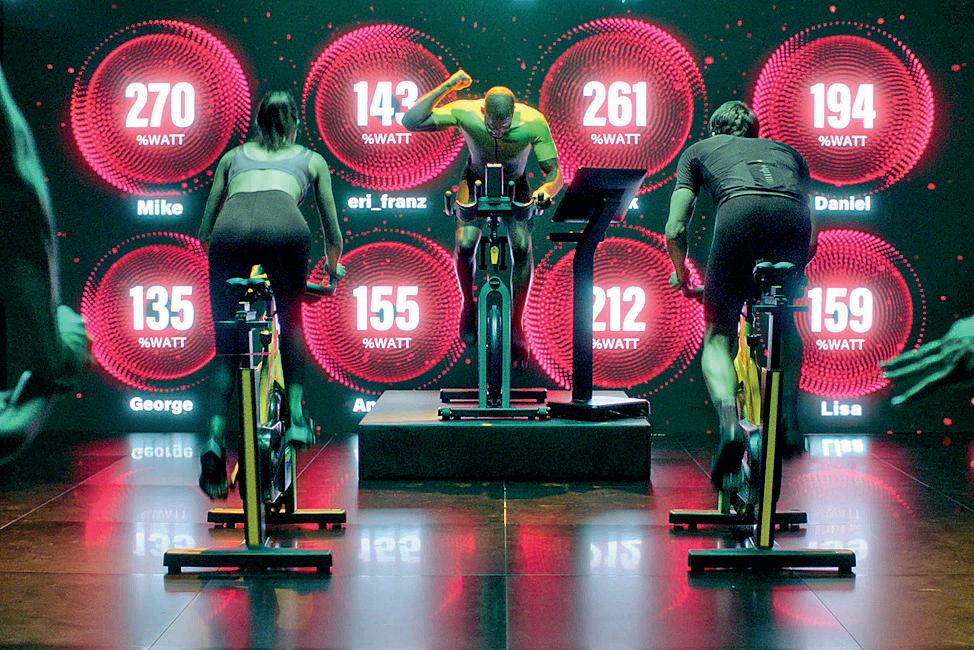 A huge video wall allows riders to visualise personal and class results and immerse themselves in the atmosphere. Videos give riders a boost when they need it most.