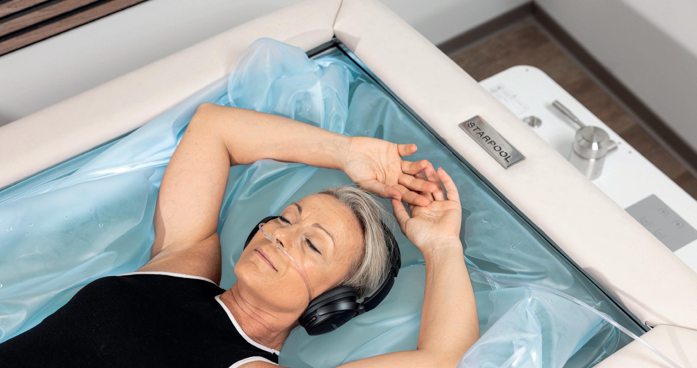Dry Float Therapy is offered through the patented Zerobody Dry Float system, which allows the body to float on 400 litres of