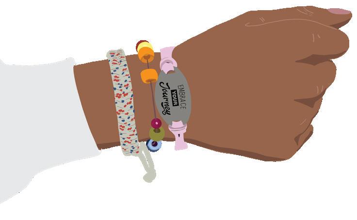 “My friends made a bunch of bracelets for me with different designs and charms. I wear them everyday to remember their love for me and to embrace myself.”