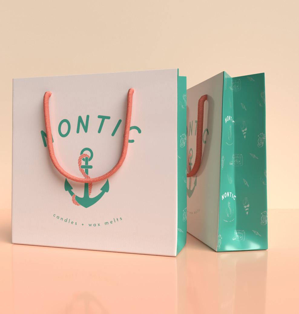 Last but certainly not least, we’ve chosen this white cardboard bag for our Pisces friends. The bag has a simple design on the front, but a punchier aesthetic on the gussets. Empathetic, mystical and thoughtful, this nautical themed bag design emulates the siren call we associate with Pisces.