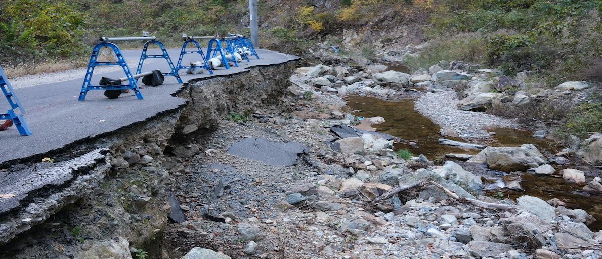 A portion of the Trans-Canada Highway washed away due to flooding.