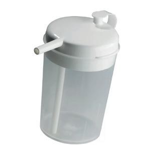 Poseben nastavek na pokrovu omogoča udobno pitje tudi osebam z omejenim gibanjem glave in vratu. Za vroče in hladne tekočine, primerno za čiščenje v pomivalnem stroju in uporabo v mikrovalovni pečici. Kozarec z utori je na voljo v treh barvah: prozoren, moder in siv.