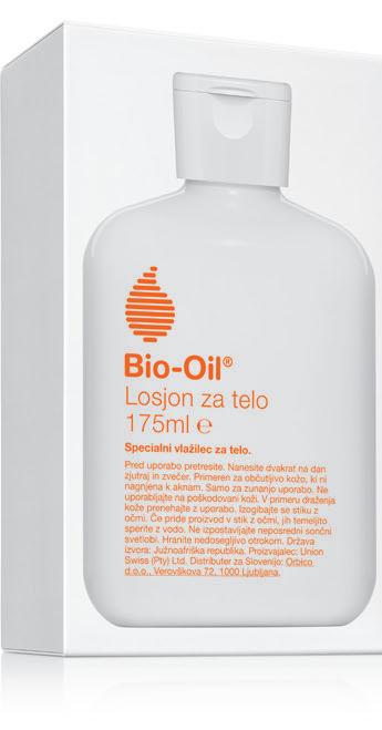 Olje in 100% Naravno olje za nego brazgotin, strij, neenakomerne polti ter nego zrele, izsušene kože. Priporočljivo za nosečnice, 60 ml ali 125 ml. Gel za nego suhe kože, 50 ml ali 100 ml. Losjon za dolgotrajno vlaženje, 175 ml.