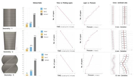 1) MATERIAL EXPLORATION 1 - A. MATERIAL COMPOSITION 1 -B GEOMETRIC ACQUAINTANCE GEOMETRY - 1 GEOMETRY - 2 GEOMETRY - 3 1 - A. MATERIAL RATIO RESULTS ROBOTIC SETUP PISTON & PRESSURE BASE EXTRUDER 8 GEOMETRY - 3 PRINTING EXPLORATION WITH BASIC GEOMETRIES