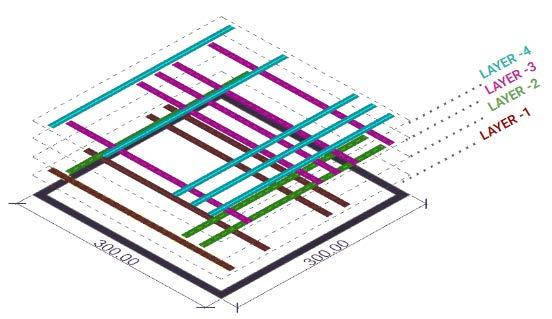 Grid Liquid concrete mixture is delivered into a regular shape mold with pre embedded reinforcements.