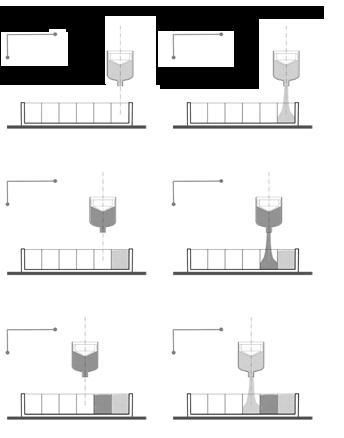1. Place the grid on the first level. 2. Cast the mixture based on the voxel. 3. Move the grid to second level and cast.