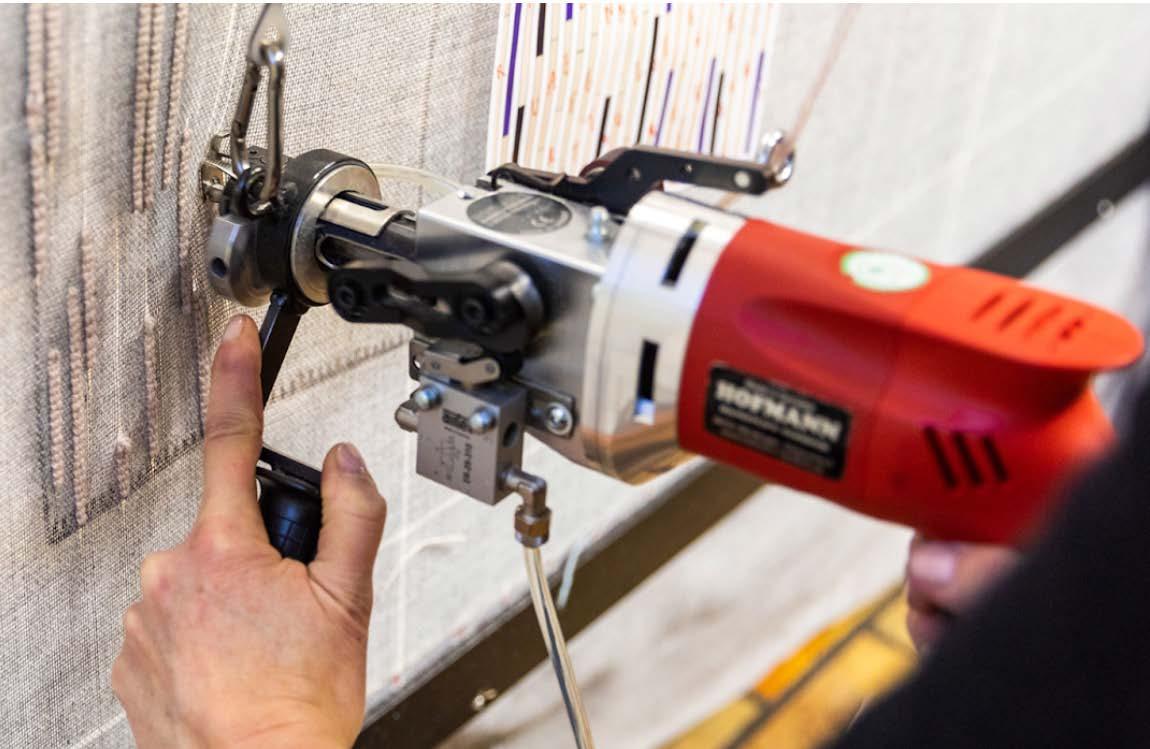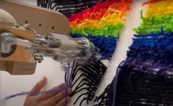 Time is a group project developed to explore the art of tufting by using a robotic arm. The goal is to design a rug with a tufting gun (tool) mounted on the head of the robot which then follows the generated tool path to tuff on a fixed piece of cloth. The design concept is an abstraction of a ray of white light splitting into VIBGYOR spectrum after traveling through a glass prism. The objective was to create a rug with an accurate infill pattern to get a seamless output with the robotic tool path and further the output was trimmed to give a finishing touch. Further explorations were done to combine gesture control of the human hand to create a pattern, which was recorded with an AR system and transferred to the scripts to create targets for the robot to follow.