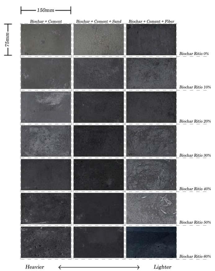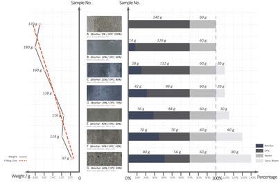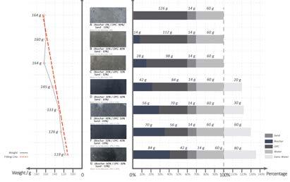 MiscanthusSoftwood Straw Sewage Sludge Rice Husk RAW MATERIALS 1. Air decontamination 2. Humidity regulation 3. Electrosmog 4. Structure substitution 1. Silage agent 2. Feed additive 3. Litter additive 4. Slurry treatment 5. Manure composting 1. Soil additive 2. Soil substrates 3. Preventing pesticides 4. Treating lake water 1. Carbon fertilizer 2. Compost additive 3. Plant protection 4. Compensatory fertilizer Biomaterials Animal Farming Decontamination Soil Conditioner PRODUCEPROCESSBIOCHARPRODUCT Materials Sources: Properties:Process: 1. Detoxification 2. Cataplasm for insect bites 3. Carrier for API 1. Fabric additive 2. Thermal insulation 3. Deodorant Medicines Textiles 1. Raw materials from waste organic matter 2. Drying 3. Grinding into smaller pieces 4. Slow pyrolysis processing 5. Output product 1. 2. 3. 4. 5. Oilseed Rape Straw Wheat Straw Grass Carbon negative Light BiocompatibleNon-toxicweight AbsorbentPorousBiodegradable MANUAL FABRICATION PRODUCTION BIOCHAR LIFECYCLE AND MANUAL PRODUCTION Some basic manual exploration to understand the material composition, weight and bonding strength. The whole process was carried forward after the breif understanding of the production of biochar as a recycleable matter with its carbon emission percentile. Recipe 2 (Cement + Biochar + Water): Recipe 3 (Cement + Biochar + Fiber + Water):Recipe 1 (Cement + Biochar + Sand + Water): 52 53