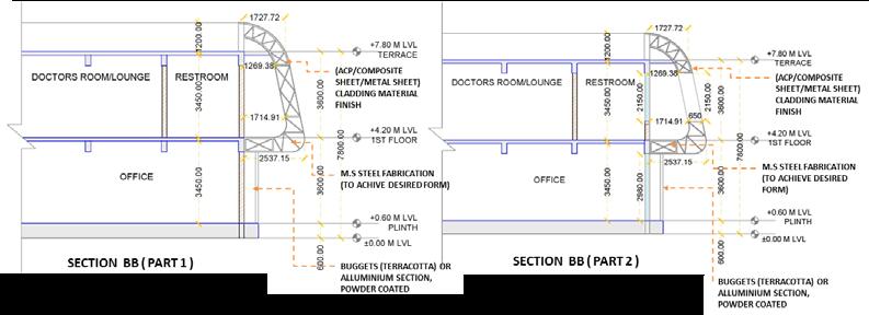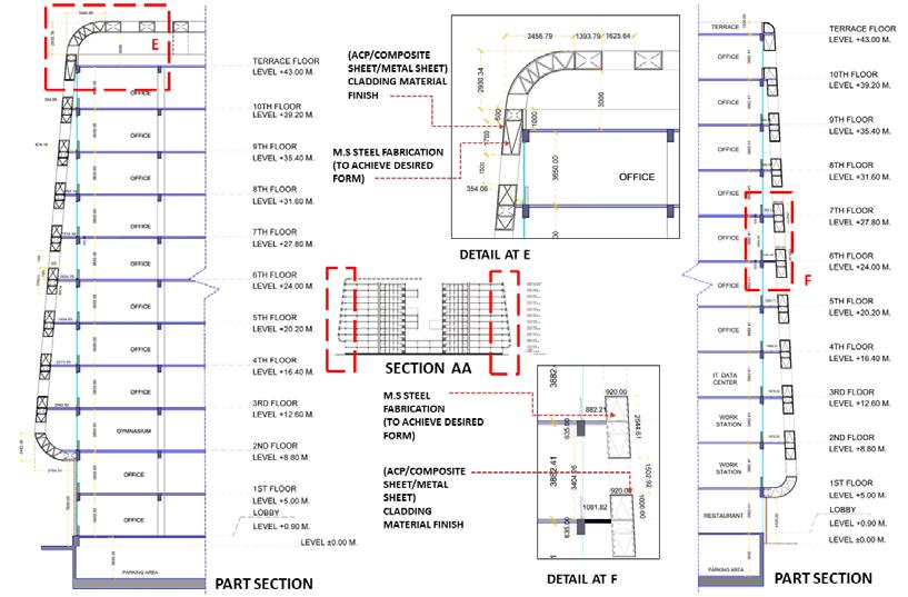 36 37 WORKING DRAWING FOR FACADE CONSTRUCTION DETAIL @ A CONCEPTUAL RENDER