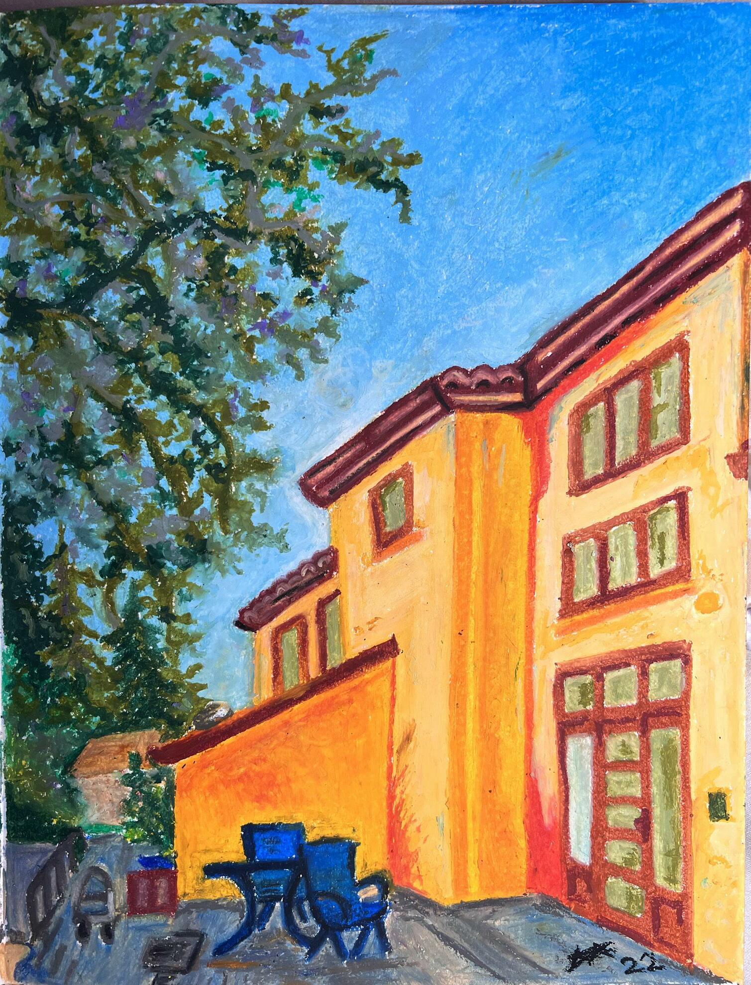Chamomile tea cools on the window sill, a finch in the doorway. A woman is on the floor, hair in the strands of the carpet. The puddle of her blood is a parallelogram opening. She has never had a looser grip. The firefighters breach the broken door to find her later. The carpet melts into the concrete foundation of her tan house on Steiner Street.