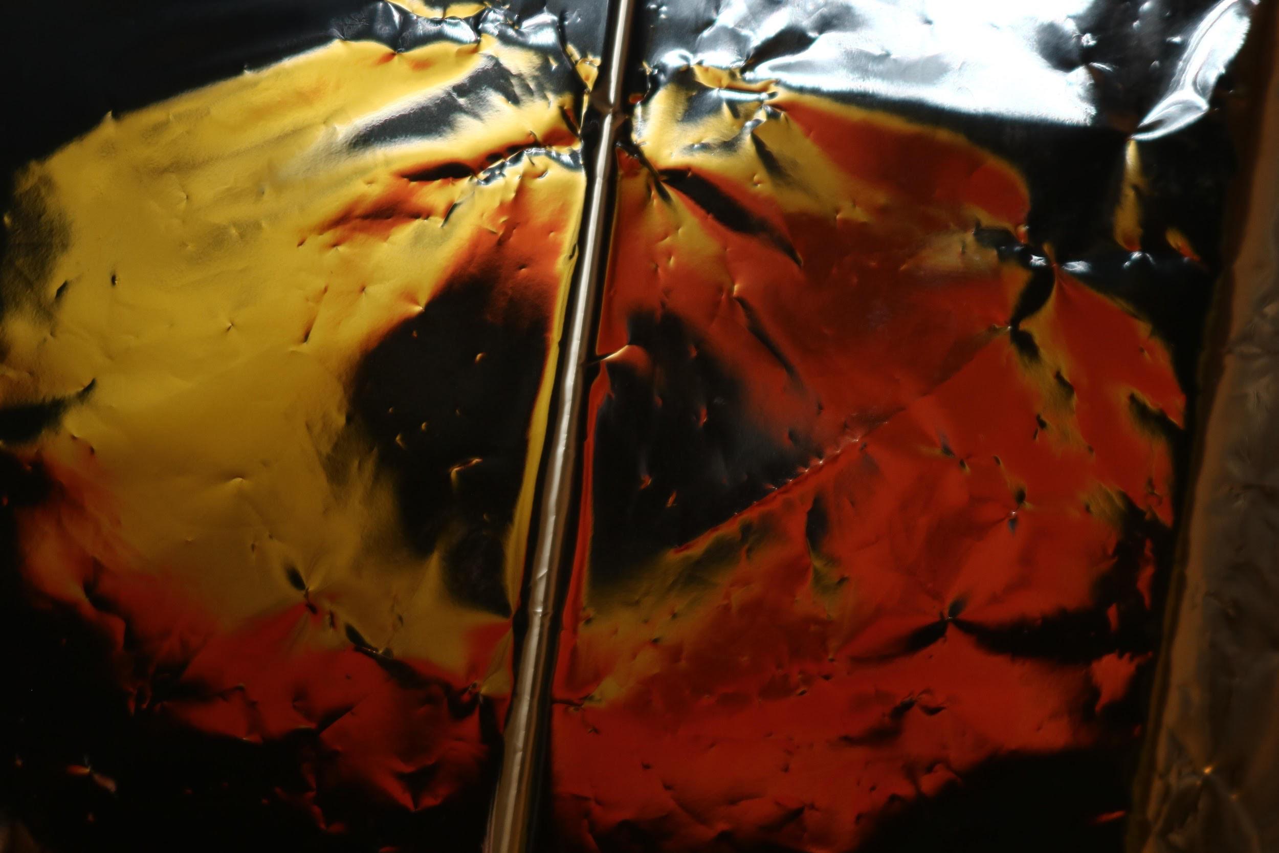 Last night, you cut tomatoes with the dull knife and it slipped into your knuckle. Your brief gasp, tang finding blood, undone flesh, a scent of ripeness. Here is that moment, flowing across canvas. A wound unfolding