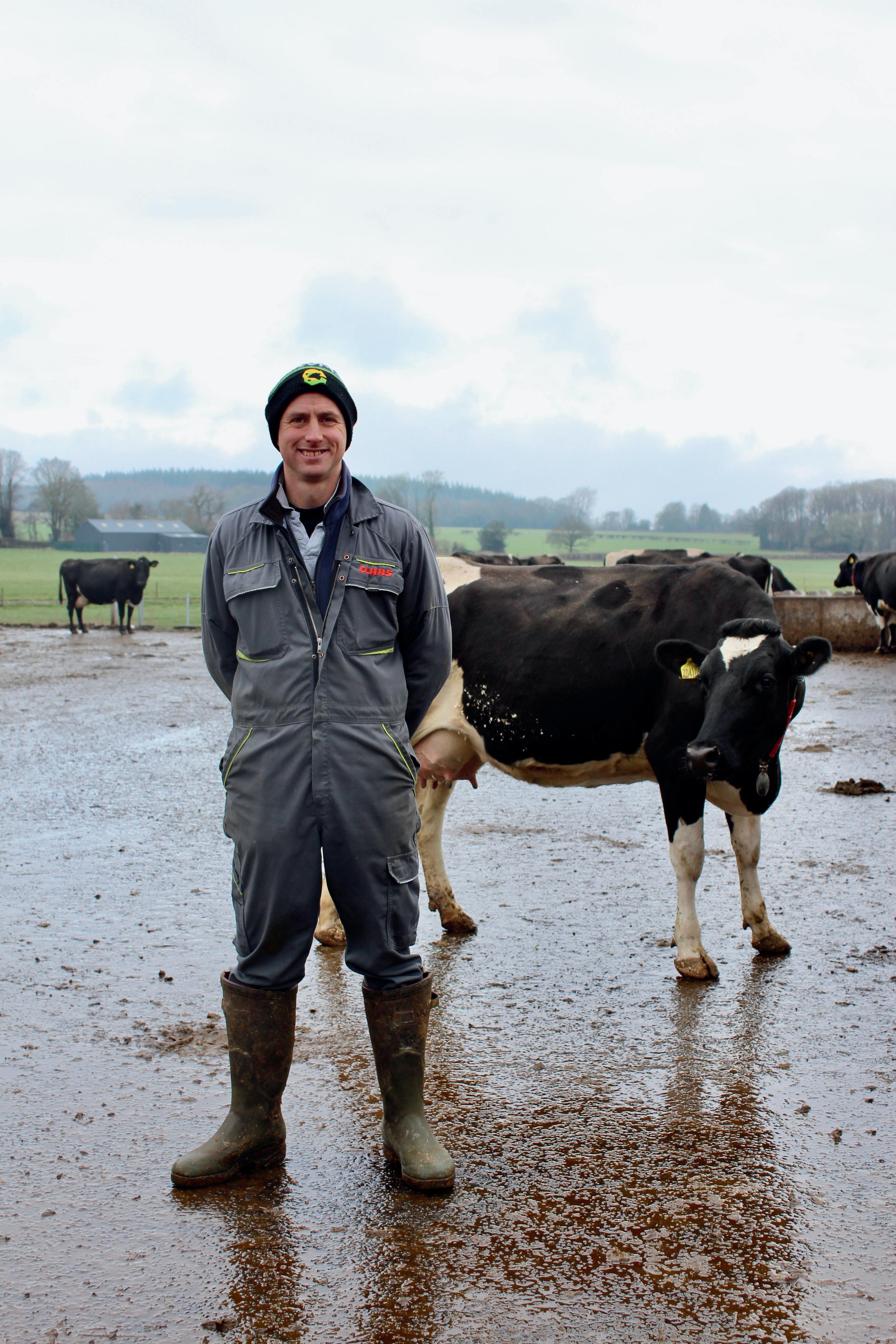 Cows will be buffer-fed silage at grass when calving begins, before being housed and fed robot concentrate and self-feed grass and maize silage which is layered with rape meal. Some silage is fed through troughs whilst Georgefine-tunestheself-feedsystem.Theherdwilllikely be turned out in March and will move to purely grazed grassandanaverageof2kgofrobotcake/head/dayasthe seasonprogressestomaximisemilkfromgrazedgrass.