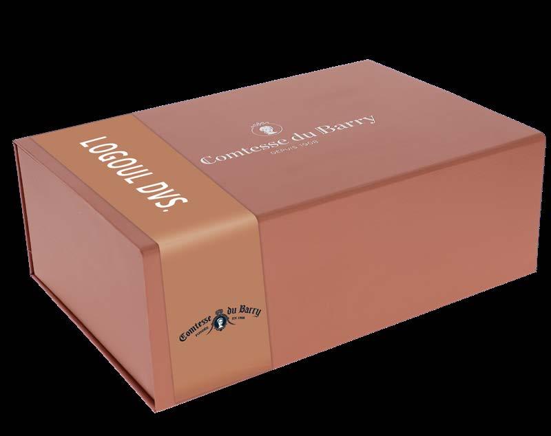 Este foarte ușor să personalizați pachetele Comtesse du Barry adăugând logo-ul dumneavoastră pe manșoanele ce pot fi aplicate pe cutiile cadou.