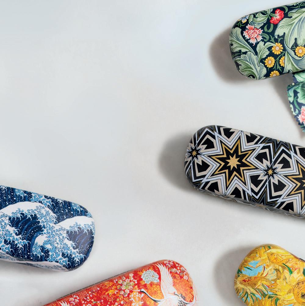This brand new range of printed clam-shell glas se s cases of fer ten unique designs from great British brands including V& A, Angela Harding, British Museum, Brambly Hedge, Catherine Rowe, Matthew W illiamson and Wild Press. Each case come s with co -ordinating printed lens cloth. They are a delightf ul gift for any glas se s wearer