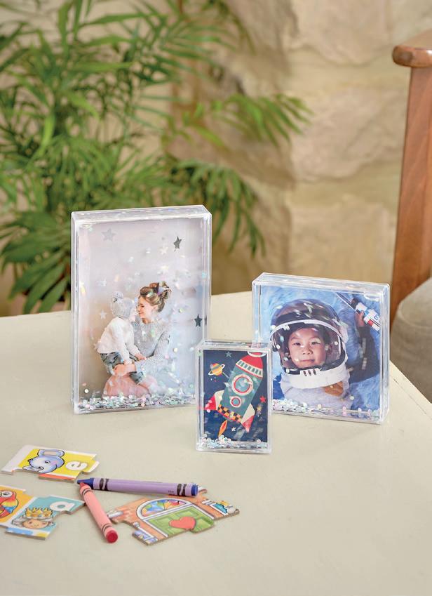 Other popular instant photo gifts include acrylic magnetic photo frames for 4x4” prints. Available in black or white, they make ideal fridge displays and impulse purchases. And acrylic shake snowglobe frames, filled with water and silver swirling sequins, bring a sense of fun and nostalgia that suits holiday memories perfectly, while still o ering genuine photo display rather than novelty alone.