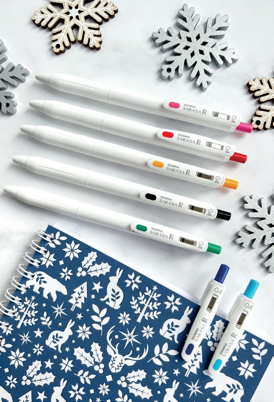 Furthermore, the bestselling Sarasa Clip range now boasts 20 colours across four di erent point sizes, from 0.3mm to 0.7mm. An ideal tool to have within any budding artist’s stationery collection, these gel ink rollerball pens feature a smooth-flowing and rapid-dry, archival-quality water-based ink that resists smudging, making them the ultimate choice for creative journalling. Combining sustainability with premium Japanese quality and performance, each pen is made using a guaranteed minimum of 70% recycled content, excluding refill and nonplastic components.