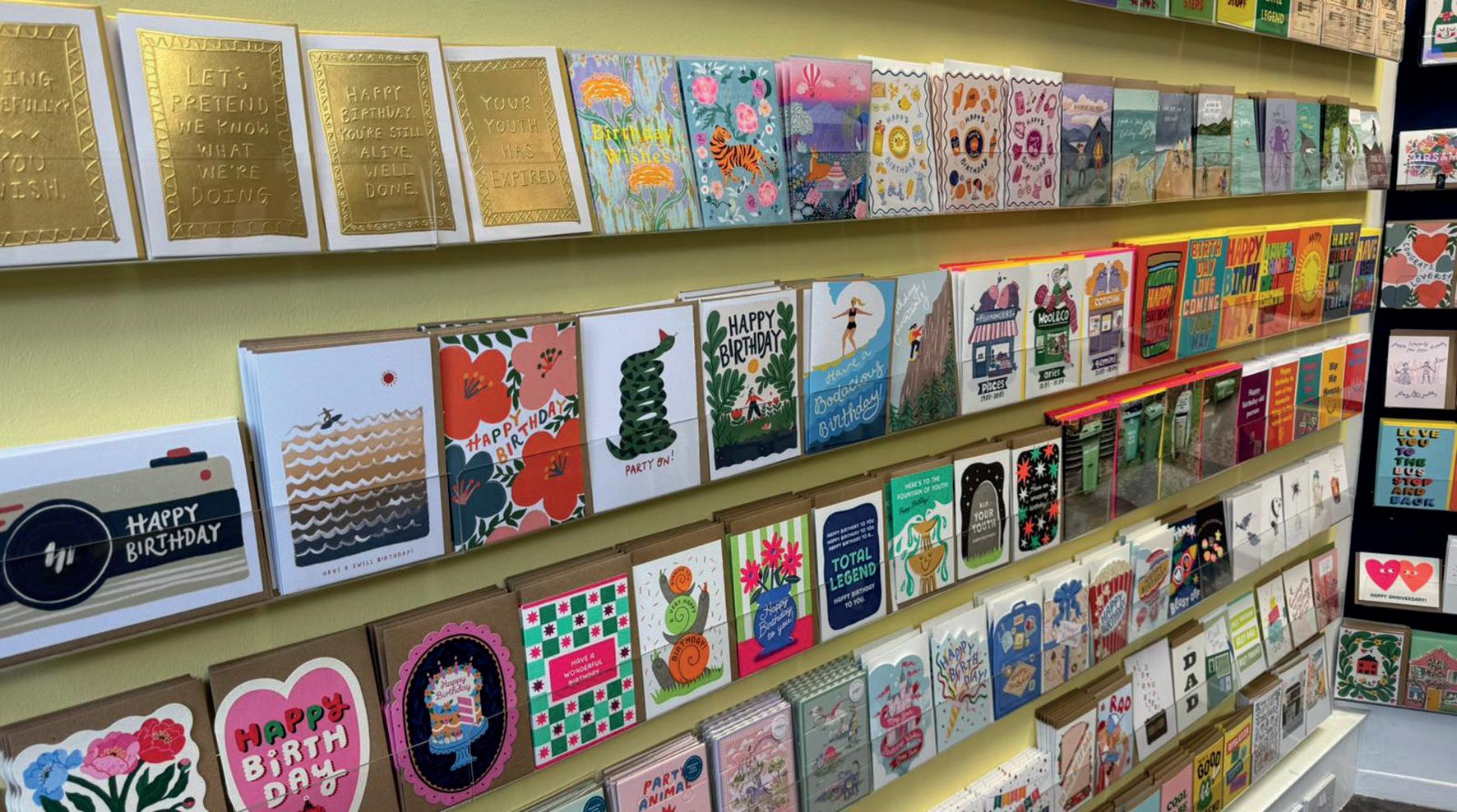 We chose to focus on the seasonality of Mother’s Day, with it being tulip season, with a focus on botanical-inspired gifts. We tried some new cards from Ohh Deer and Wanderlust Paper Co. Father’s Day will be an emphasis on food gifts; we have great pickles from Goat Rodeo and chocolate from Ocelot, Pump Street and Otherly