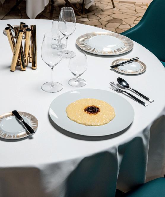 Based on the hillsides of Turin, Michelin-starred chef Andrea Larossa runs his award-winning restaurant with his wife Patrizia Cappellaro, sommelier and maître. For its high-quality tabletop, chef Larossa uses Sambonet Gio Ponti cutlery, Rosenthal Seven Contour vase and Raynaud custommade Lunes porcelain.