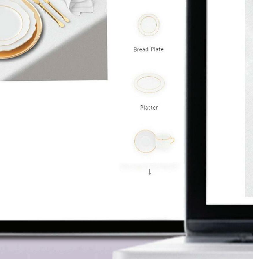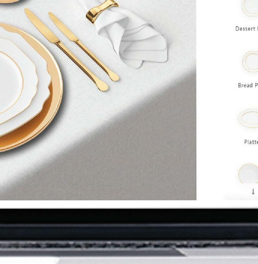 The fine bone china collection comprises several sizes of plates and bowls – the depth and width of each item is carefully designed to enhance the beauty of the food. The dinner plate and deep plate are especially