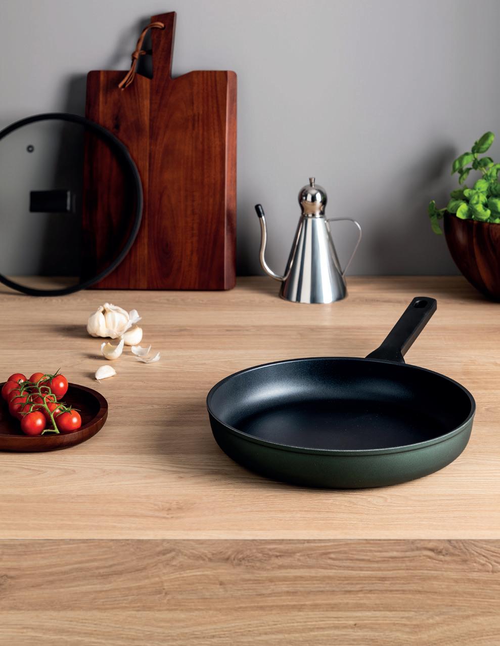 The new green PFAS-free coating makes Titan Pro Green a true example of environmental respect and personal well-being, allowing for safe cooking while preserving the natural qualities of food. Lastly, the colour—a new, trendy dark green— draws attention to environmental