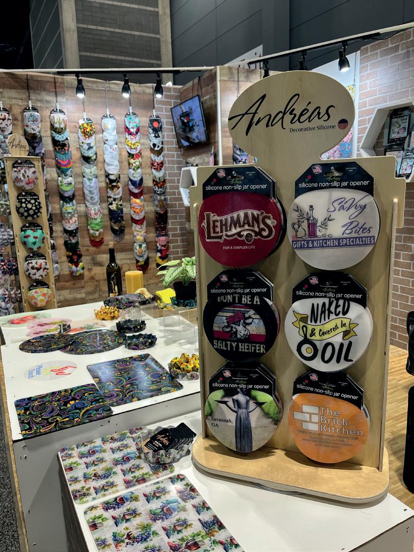 Andreas Decorative Silicone offers a huge range of mats, coasters and jar openers and can offer corporate or bespoke designs. Danica from Canada had Heirloom Mosaic cheese knives which had been selected for the Pantone Color Watch display at the show.