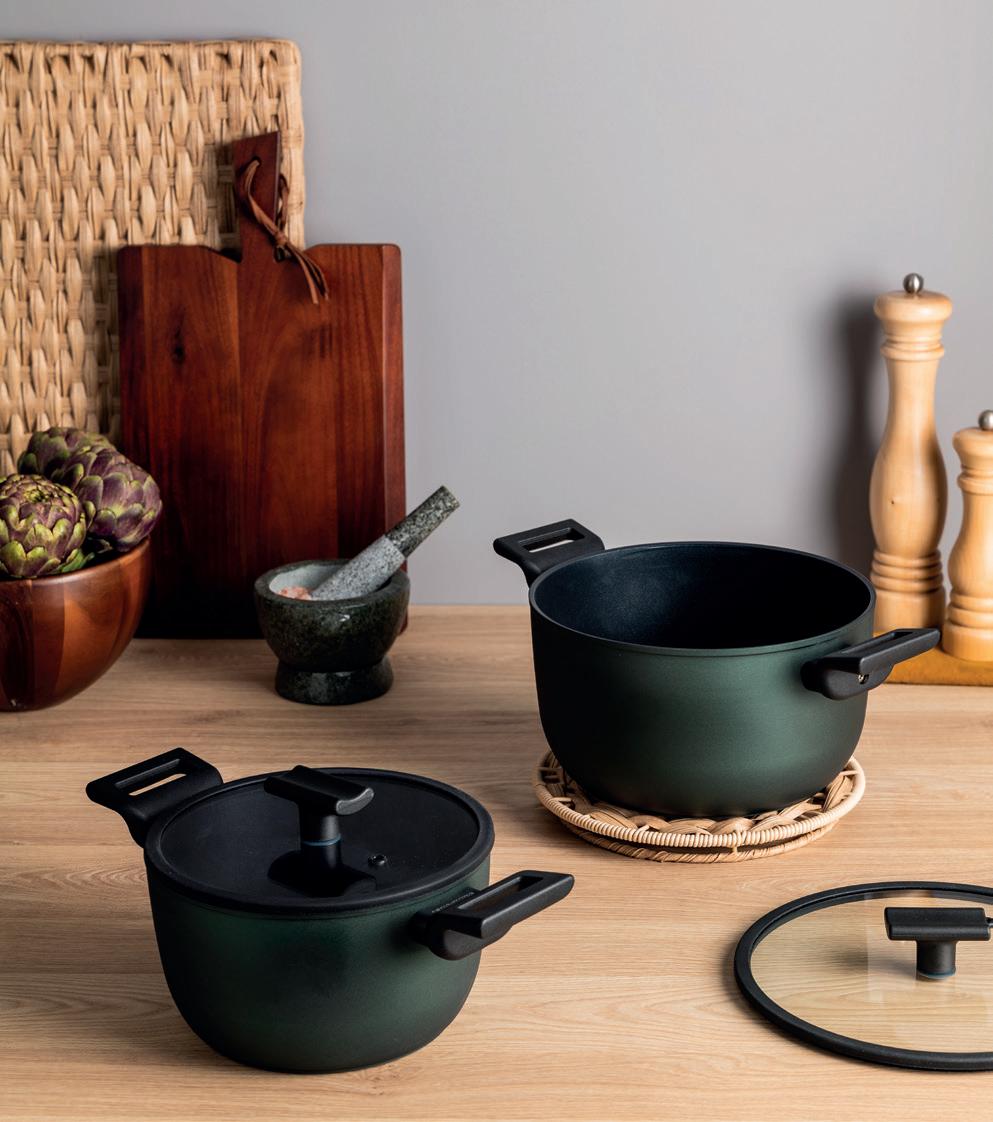 Designed for both daily and intensive use, the Titan Pro Green 100% Made in Italy collection by Sambonet stands out for its exceptional performance in the kitchen, combined with health-conscious design and environmental sustainability.