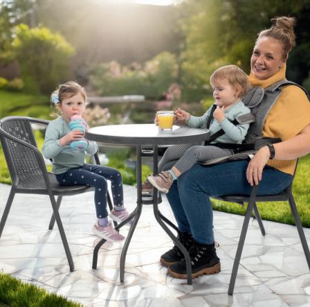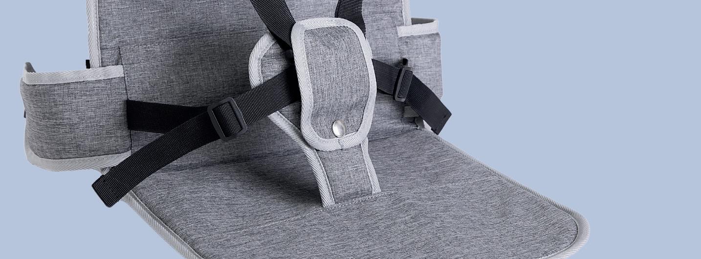 Accepted for use on aeroplanes by the CAA and EASA, the WriggleEase has a ve point harness and lightly padded lap seat to keep a child aged 6 months -2 years comfortably seated, while secured to the parent hands-free.